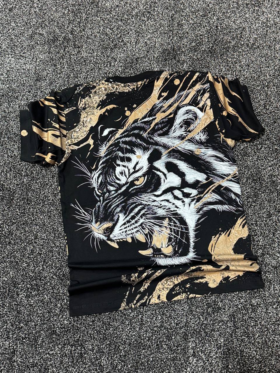 تی شرت مردانه مدل آستین کوتاه جنس نخ پنبه طرح پلنگ نگین دار